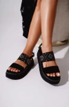 Sandalia con base Gomon detalles de ojales en color niquel /negro y hebilla fija (no se achica) super comoda y fresca.